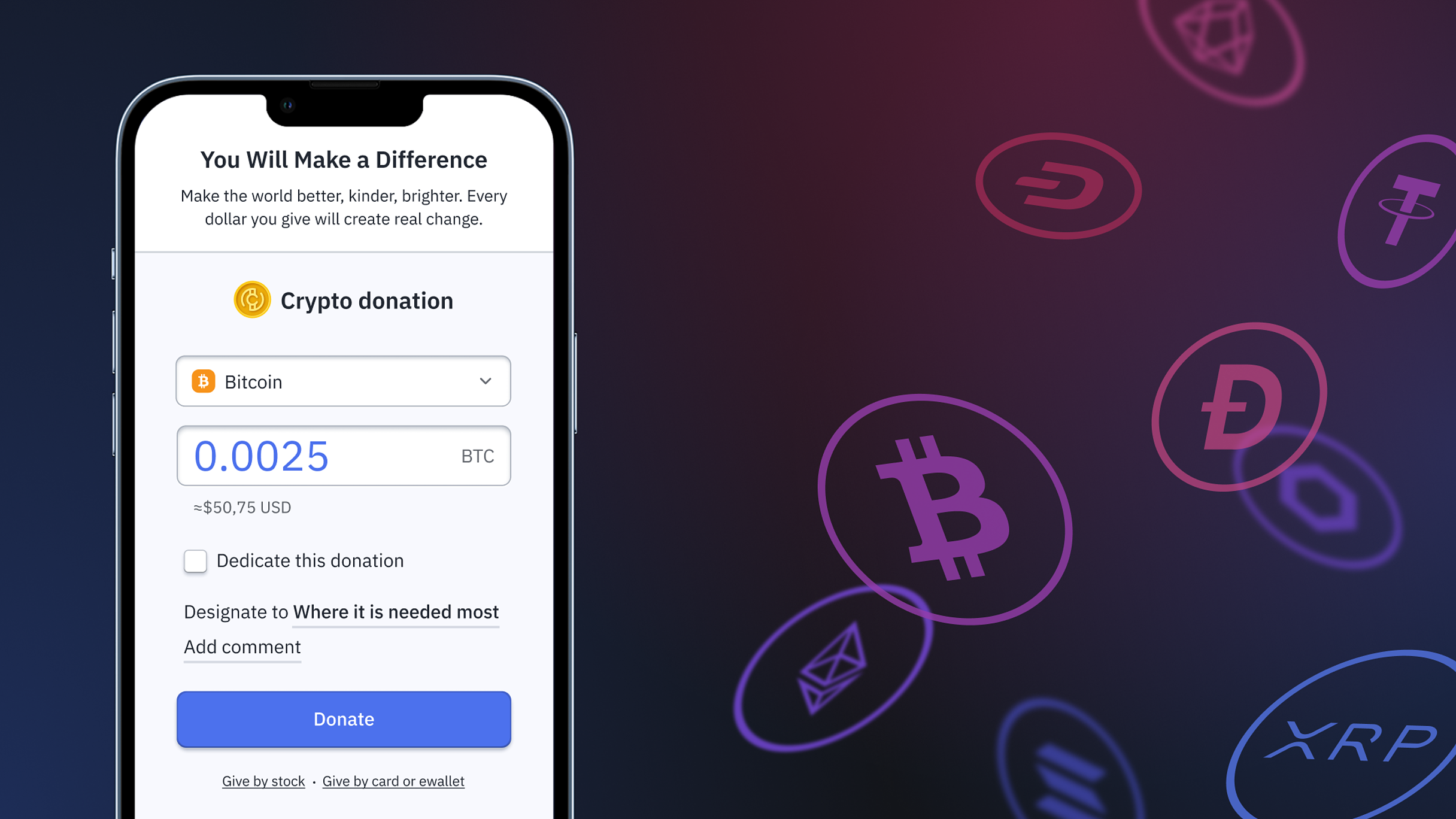 - Collect crypto, card, digital wallet, and bank transfer donations using one platform
