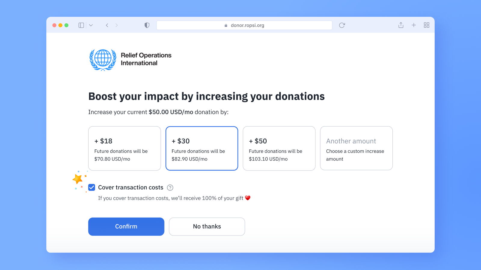 Recurring giving offers a firm foundation for any fundraising program, and by enabling upsells, you can automatically add to that foundation.