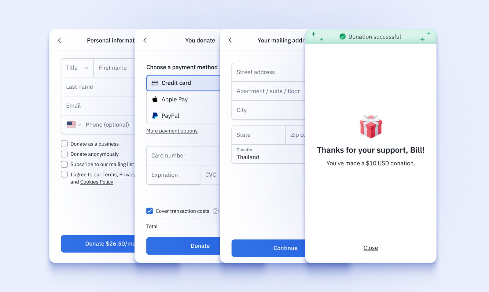 - Friction-free giving: We fine-tune the donor experience to eliminate roadblocks and make donating effortless.