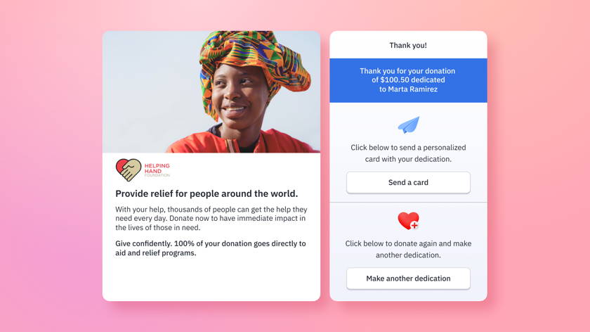 Dedicating a donation, whether in honor or in memory, is an important way for donors to add significance to their donation and better connect with your nonprofit's cause. Now, with Fundraise Up, donors can choose from a variety of images to accompany their dedication; all pre-curated and categorized by your organization.