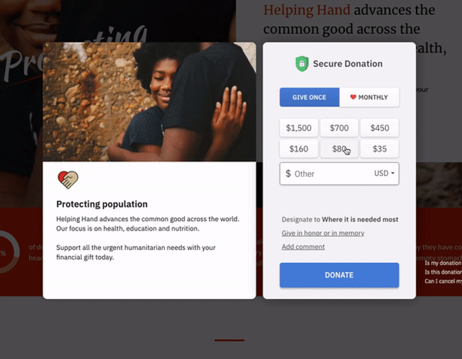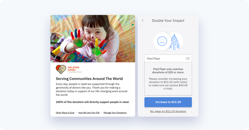 To complement the machine learning magic happening behind the scenes, we incorporate psychology-driven design into the checkout experience. Using subtle visual cues, we’re able to motivate donors to show greater monthly support to your organization.