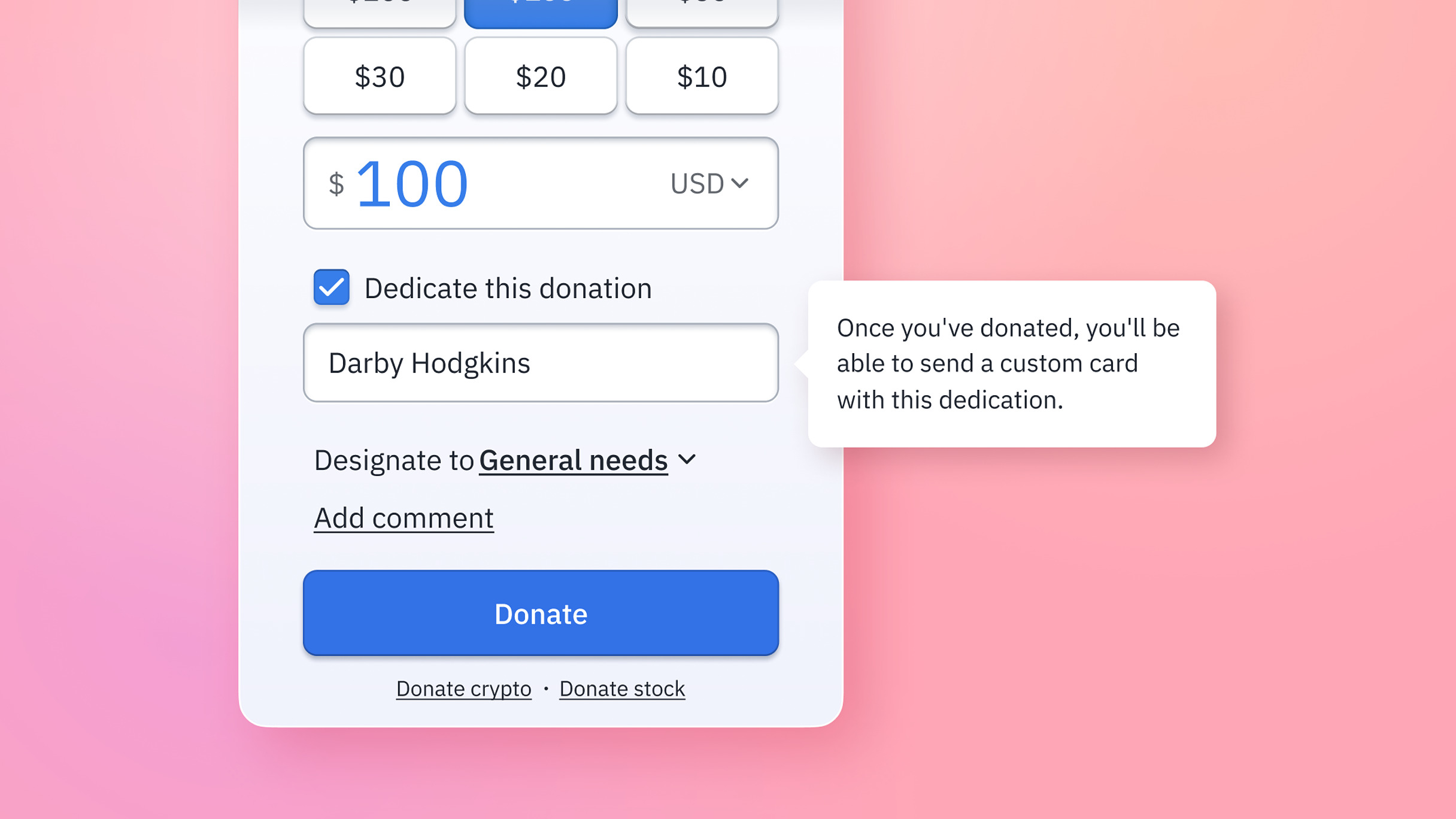 Fundraise Up makes dedicating donations as simple as checking a box.