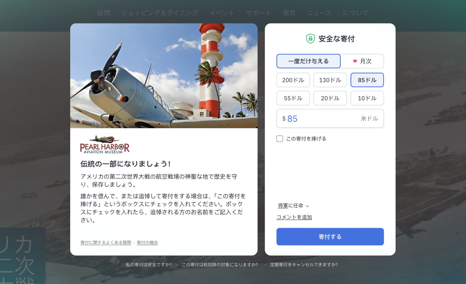 Pearl Harbor Aviation Museum is using localization for the Japanese version of its website.