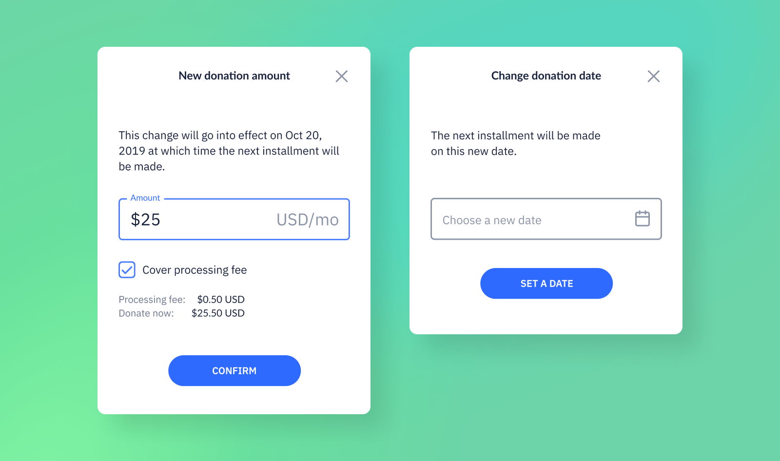 Donors don't have to call you in order to update their recurring plans — they can make changes directly from the Donor Portal.