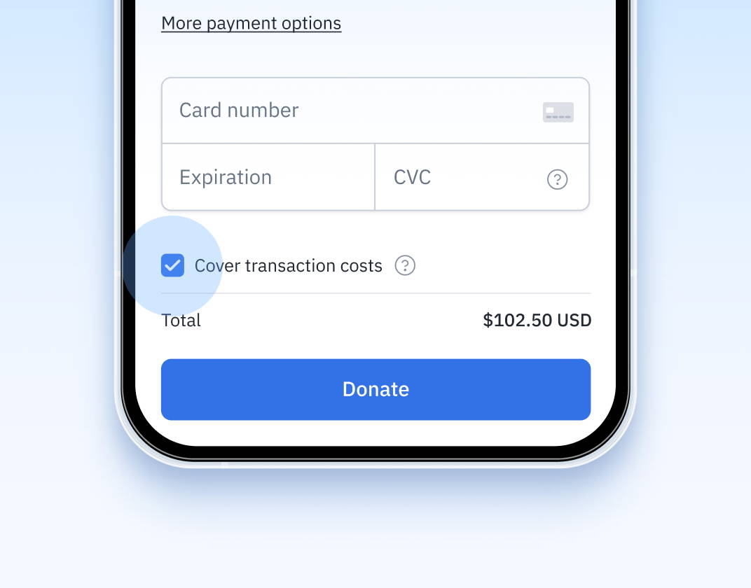 The results speak for themselves — 82% of donors opt to cover transaction fees, increasing revenue for your fundraising program.
