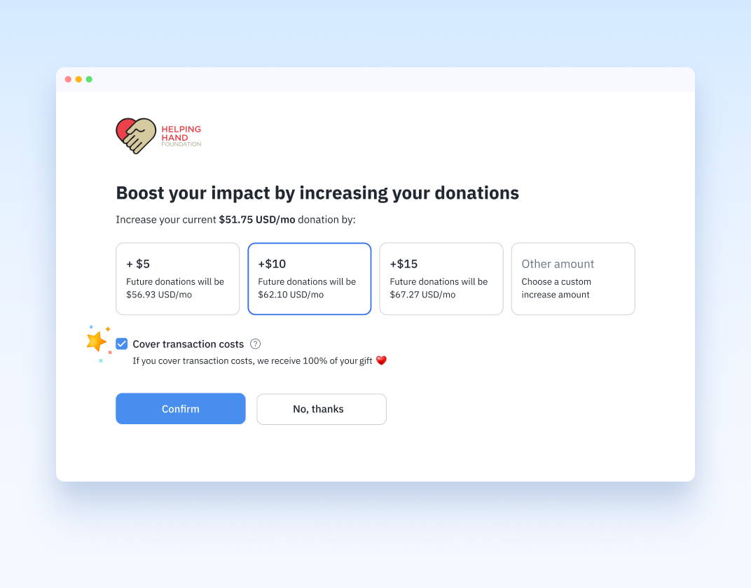 - This smarter approach optimizes both conversion rates and fee coverage, leading to higher overall donation revenue.