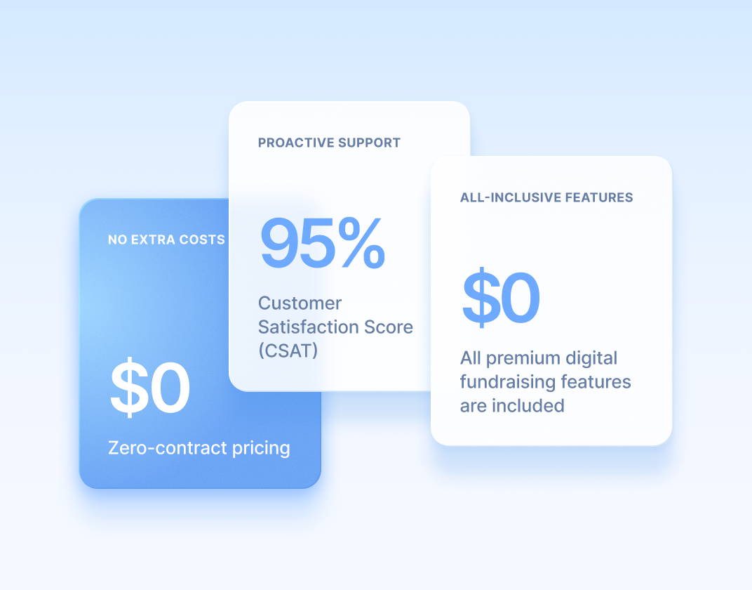 - With our industry-leading 95% customer satisfaction score, your teams can count on proactive help to keep your digital fundraising running smoothly.
