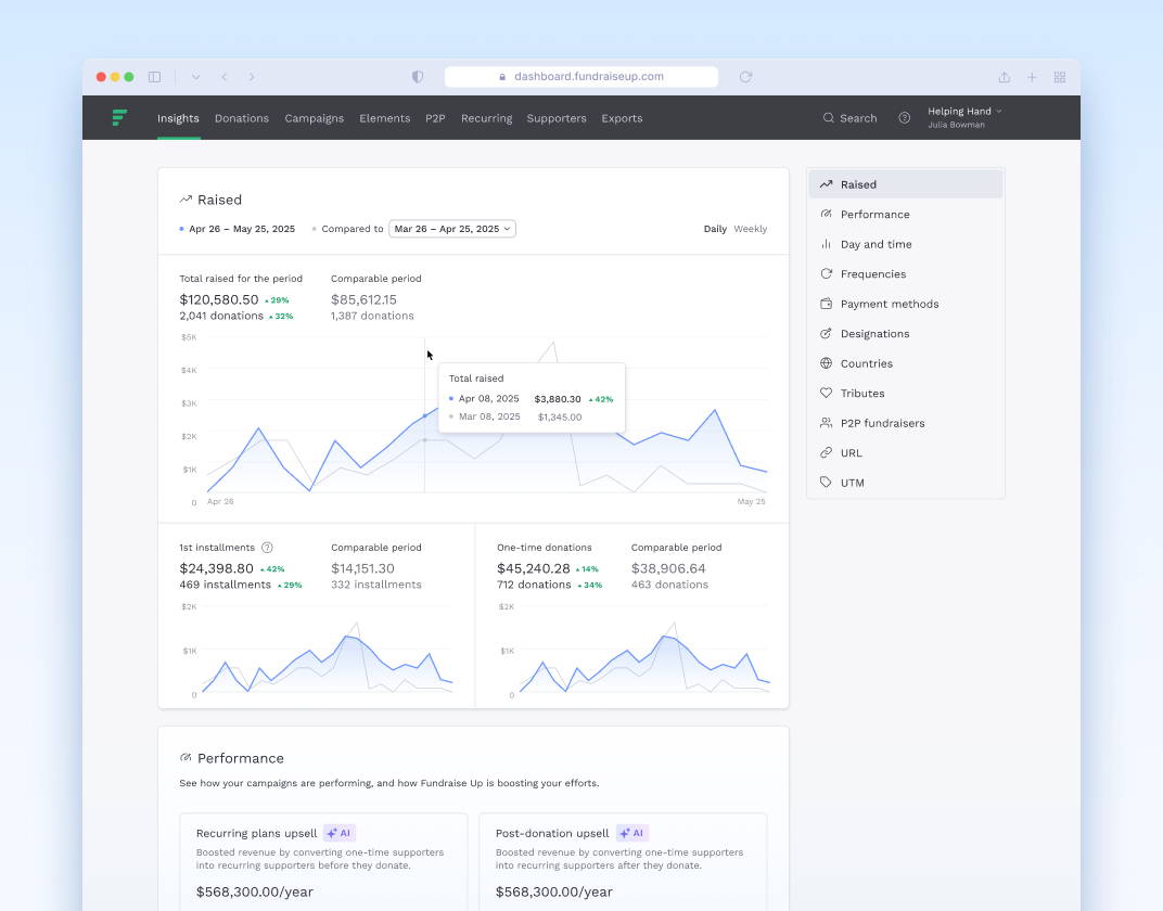See why more than 3,000 nonprofits use Fundraise Up to personalize the donor experience and maximize revenue.