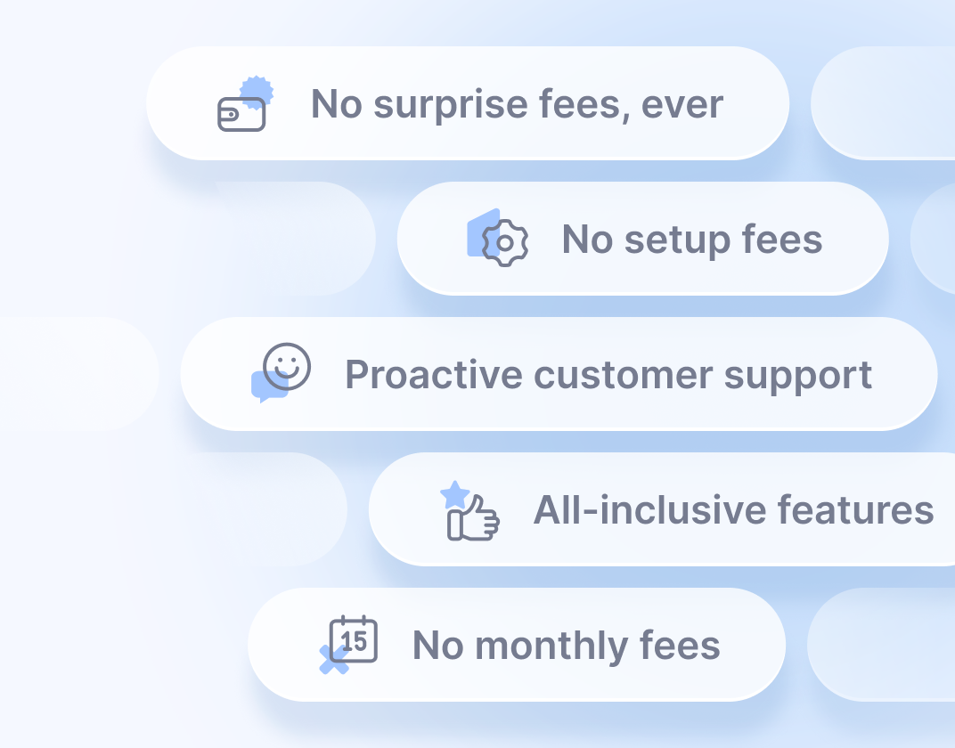 We succeed when you succeed. Our revenue is directly tied to results — we earn your business through consistent product improvements and measurable outcomes. No upfront payments or contract commitments, just simple transaction fee pricing.