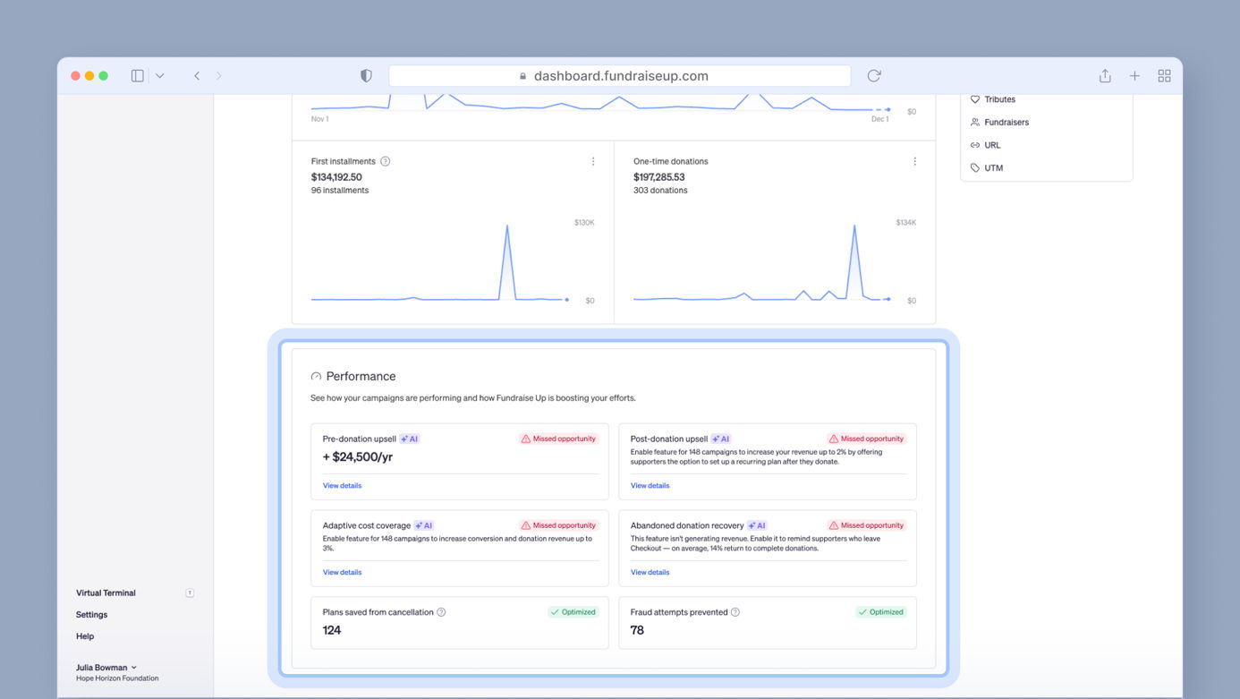 This makes it easier to find and act on opportunities to raise more from your existing campaigns.