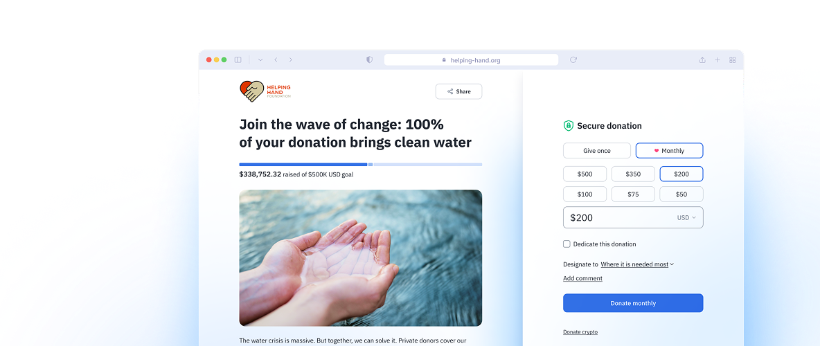 When emergency environmental concerns happen, time is of the essence. Fundraise Up is ready when you need to act quickly.