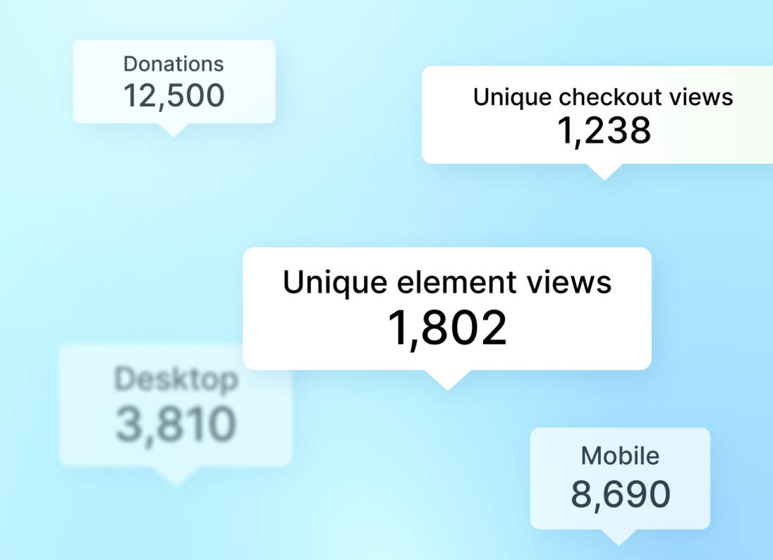 Elements automatically track real-time conversion statistics for every component. See how many people saw an Element, clicked through to Checkout, and how many people donated. You can then use the conversion data to optimize component placement, design, and behavior.