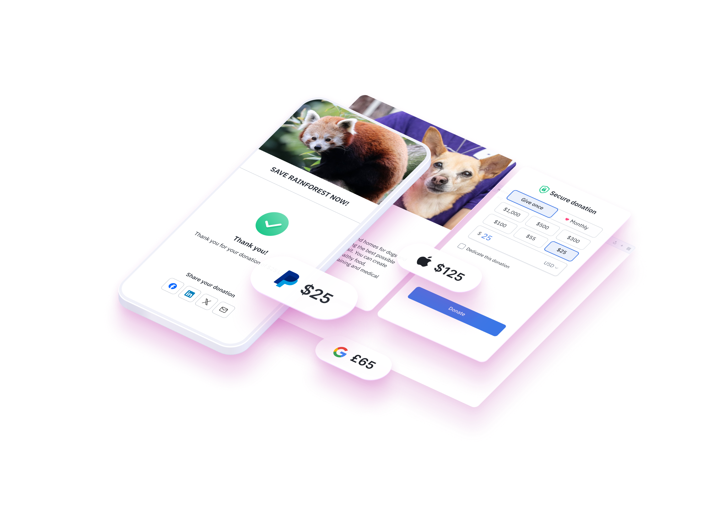 Millennial and Gen Z donors want a giving experience that aligns with their online shopping habits. Add modern payment options and digital wallets — Apple Pay and Google Pay, PayPal, and Venmo — to increase giving, reduce donor checkout friction, and build trust.