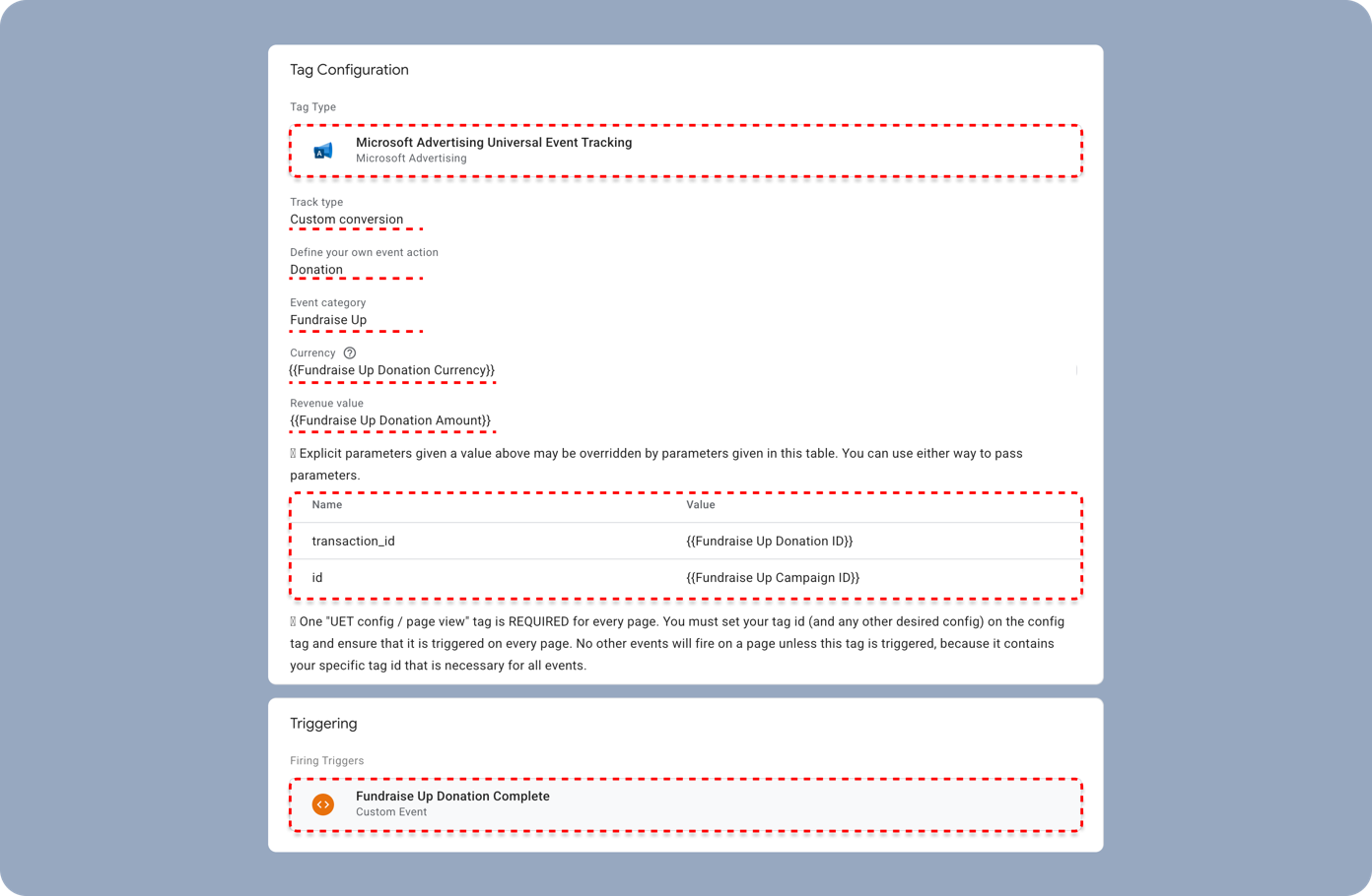 Microsoft Advertising is a pay-per-click ad platform for Bing, Yahoo, and DuckDuckGo. This article explains how to send Fundraise Up donation conversions to Microsoft Advertising using Google Tag Manager (GTM) and Fundraise Up dataLayer events.