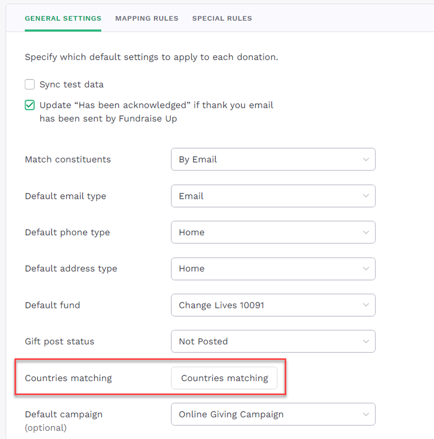 Raiser's Edge NXT requires Country information to be matched to an exact list, which must first be done in the setup of the Raiser's Edge NXT integration.
