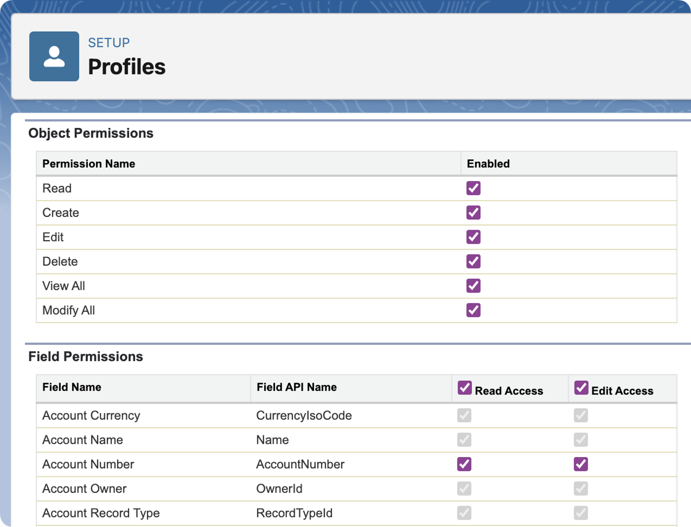 - Path: Setup → Users → Profiles → [Your Profile] → Object Settings → [Object] → Edit