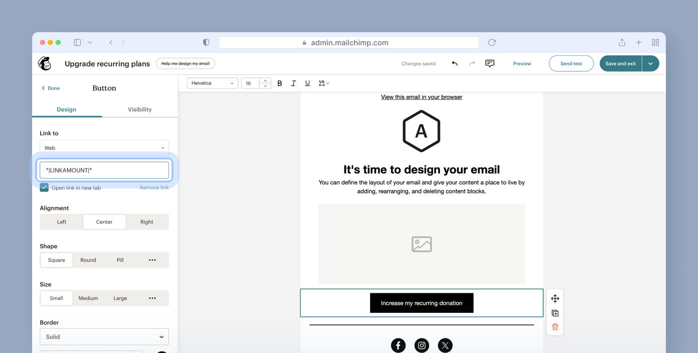 - Add a call-to-action text for the button, such as “Increase my recurring donation.”